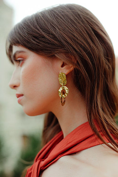 Die Orée-Ohrringe fesseln mit ihrem einzigartigen Design, bei dem zart ineinander verschlungene Kreise ein faszinierendes Formenspiel erzeugen. Diese leicht hängenden Schmuckstücke bieten einen Hauch von dezenter Raffinesse und eignen sich perfekt, um Ihrem Outfit eine Dimension von Finesse zu verleihen. Die verschlungene Struktur symbolisiert Verbindung und Harmonie und macht diese Ohrringe zu einer bedeutenden Wahl für alle, die ihren Stil auf elegante und originelle Weise zum Ausdruck bringen möchten. Ihr luftiges Design macht sie zu einem idealen Accessoire für jeden Anlass, das Ihrem Look Leichtigkeit und Schönheit verleiht.