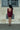 From the highest point to the lowest point of the dress (including suspenders if necessary).
